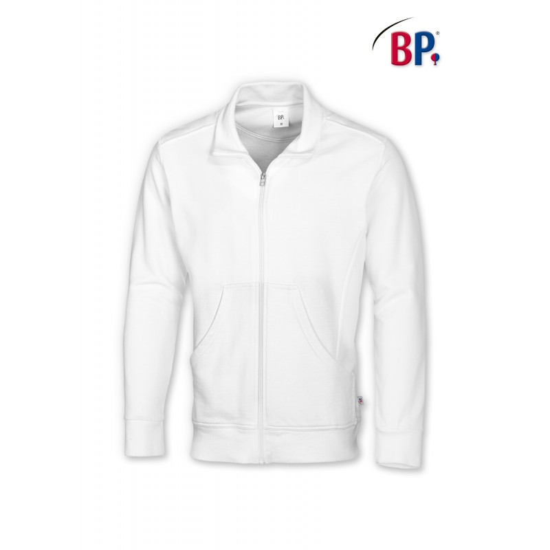 Langarm, hoher Kragen, Reißverschluss, Kängurutaschen, Ärmel- und Saumbündchen, Länge 70 cm, 320 g/m², 55% Baumwolle, 45% Polyester