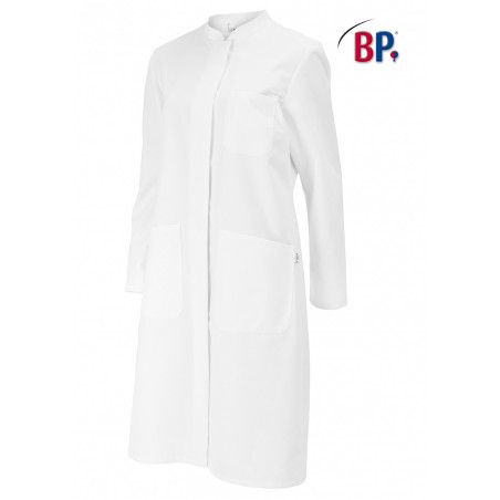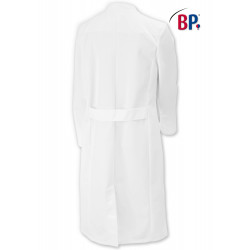 Länge 105 cm, 1/1-Arm, verdeckte Druckknopfleiste, 2 Seitentaschen, 1 Brusttasche, Rückengurt, Rückenschlitz, Gewebegewicht 205 g/m², 100% Baumwolle, kochfest