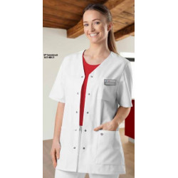 belastbarer Gewebemix aus Baumwolle & Polyester, V-Ausschnitt & geräumige Taschen,   Druckknopfleiste, bequeme Passform, 65% Polyester, 35% Baumwolle, Kochfest und Pflegeleicht, Industriewäsche-geeignet, Öko-Tex Standard 100
