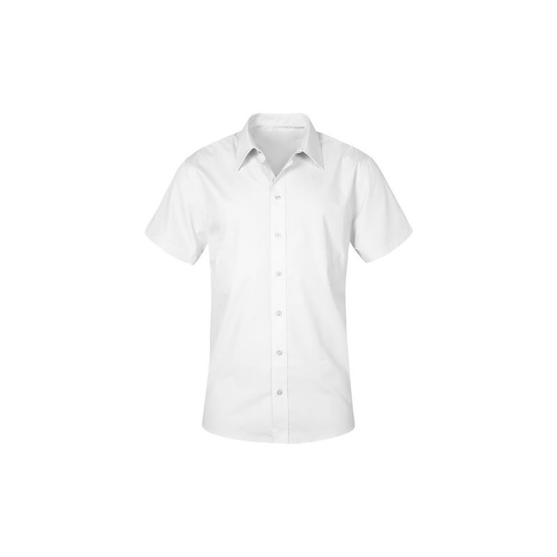 Kurzarmhemd, Kent-Kragen, Knopfleiste mit Knöpfen Ton in Ton, doppelte Rückenpasse, abgerundeter Saum, neutrales Größenetikett, separate Brusttasche, pflegeleichtes Mischgewebe, Popeline, Easy-Care-Ausrüstung, 60° C waschbar, Ersatzknopf, 55 % Baumwolle, 45 % Polyester, 120 g/m².