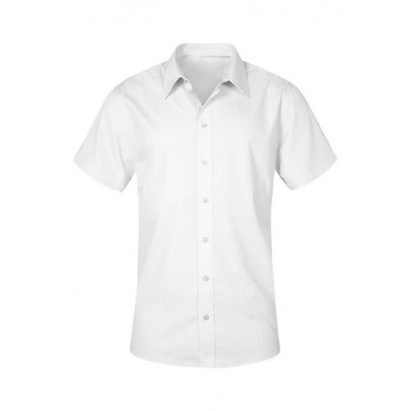 Klassisches Popeline-Kurzarm-Mischgewebe-Hemd mit verstärktem Kent-Kragen und Knopfleiste mit Knöpfen Ton in Ton. Das Hemd hat einen modernen Schnitt.
